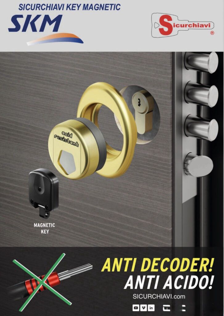Il SKM Sicurchiavi Key Magnetic Defender è una protezione per serrature che sfrutta una chiave magnetica dedicataper bloccare completamente l’accesso al cilindro, rendendo quasi impossibili le manovre di scasso tradizionali come bumping, foratura o estrazione della serratura.
